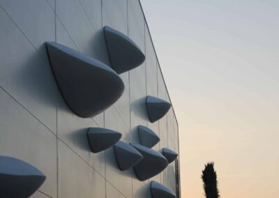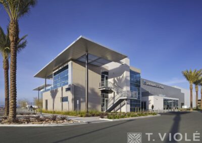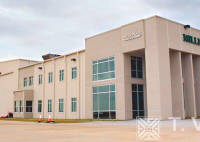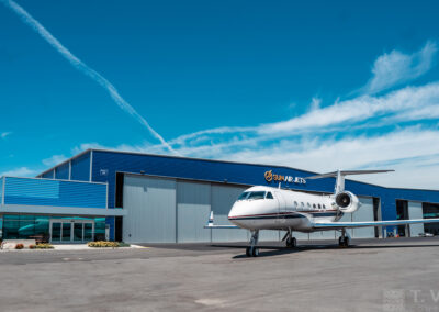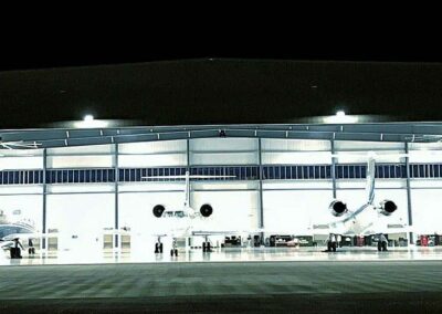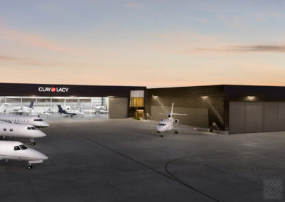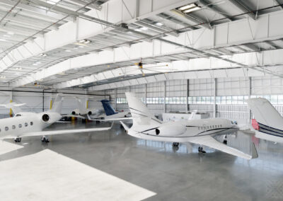 A 5-corporate aircraft hangar complex totaling 120,000 sq. ft. with clear span openings ranging from 160′ to 230′ and full floating hangar doors. A cool roof system includes accommodations for Photovoltaic System.