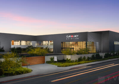 A 45,000 sq ft. corporate hangar and 13,000 sq. ft. office building. This project won the 2008 Project of the Year Award from the Southern California Development Forum. This Butler Steel structure was designed to reflect the sky and stands out as a landmark at the Van Nuys Airport.