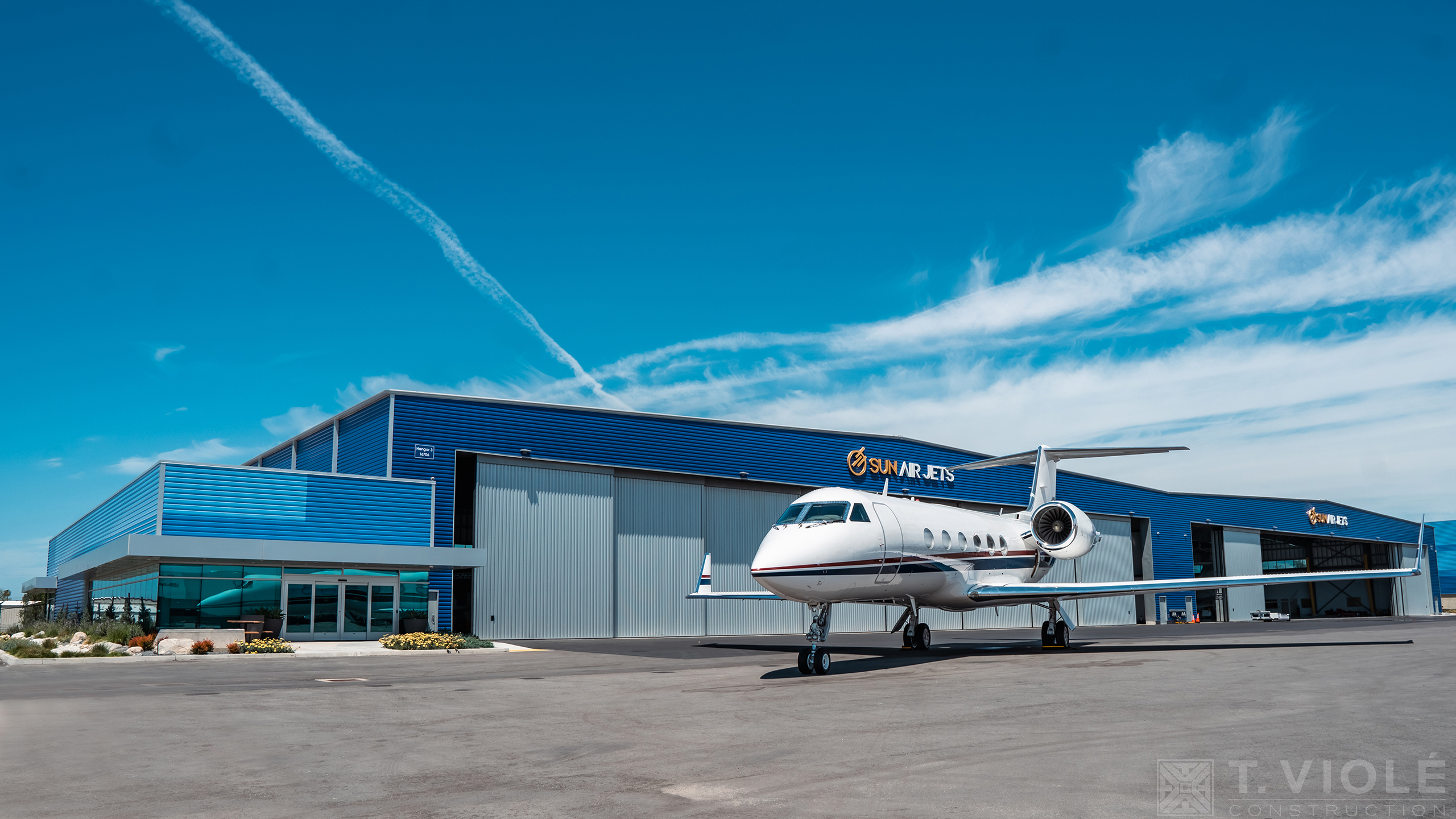 Three corporate hangars and office building totaling 76,000 sq. ft.