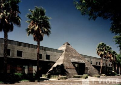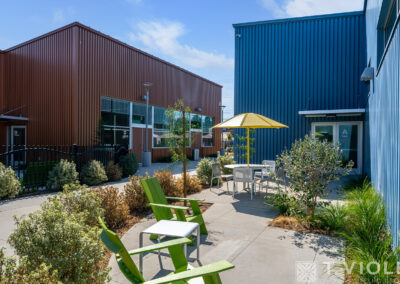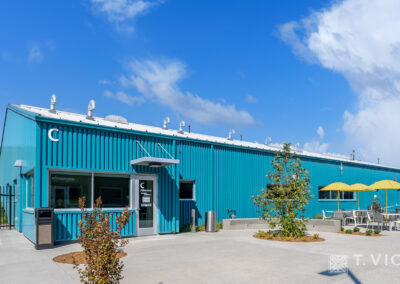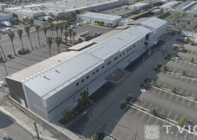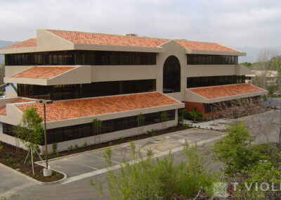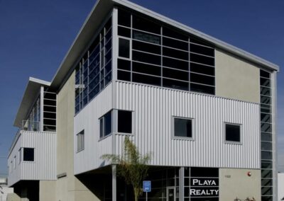 A one and two story office building totaling approximately 58,000 sq. ft. Includes open air patio/garden area on mezzanine level, six large skylight units and two open wall assemblies covered by aircraft style bifold doors. Natural day lighting achieved with the use of translucent wall and roof panels, two color – exterior single skin PBR wall and roof panels.