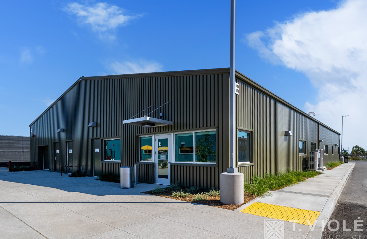 A one and two story office building totaling approximately 58,000 sq. ft. Includes open air patio/garden area on mezzanine level, six large skylight units and two open wall assemblies covered by aircraft style bifold doors. Natural day lighting achieved with the use of translucent wall and roof panels, two color – exterior single skin PBR wall and roof panels.
