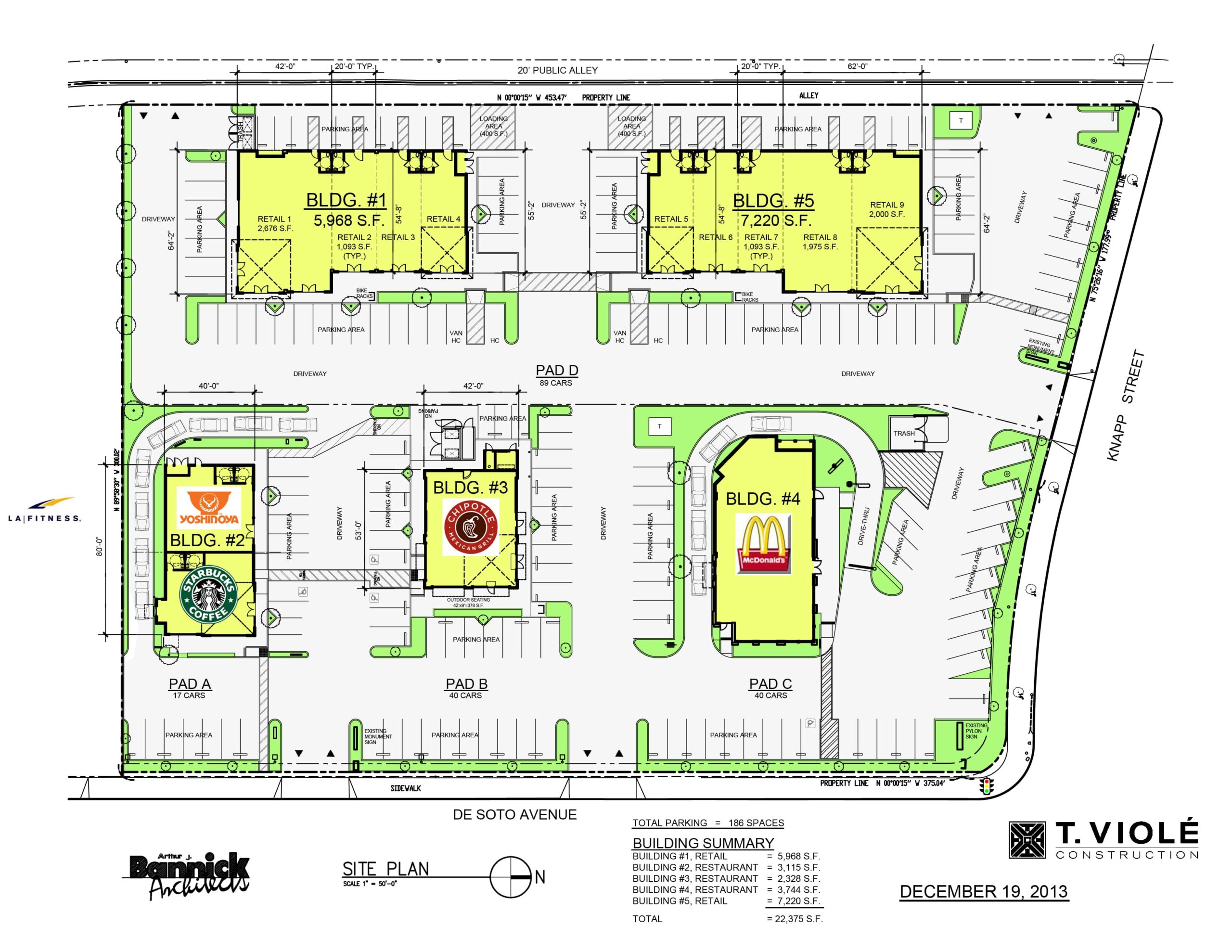 Phased development of a 3-acre parcel, including on-site and off-site utilities, hardscape and landscape for 5 separate retail buildings. Phase I completed in November 2010. Phase II completed in March 2012. Phase III completed in March 2014.