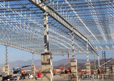 Steel erect, design-build subcontract with McCarthy Construction for a 10,000 sq. ft. pedestrian canopy, 17,000 sq. ft. customer service building and a 185,000 sq. ft. roof structure constructed on top of a 3-story parking structure. This complex incorporates galvanized primary and secondary structural elements and a Butler MR-24 “cool” roof system with accommodations for a photovoltaic system. this was a LEED Silver Project