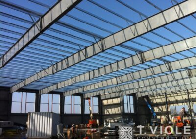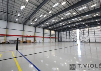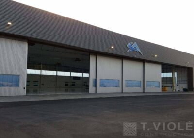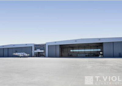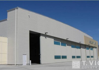 New construction of a 48,500 sq. ft. hangar, 280 ft. clearspan, 55 ft. clear height, with an adjacent 5,800 sq. ft. steel framed office. This project also includes 171,000 sq. ft. of concrete tarmac and 25,000 sq. ft. of parking lot improvements.