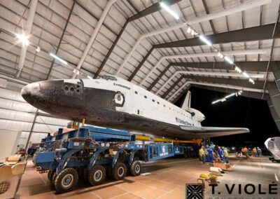 New construction of a 17,500 sq. ft. by 66′ tall, 6:12 roof slope, Butler pre-engineered steel building to house the Space Shuttle Endeavour Orbiter at the California Science Center in Downtown Los Angeles.