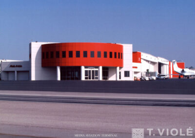 A 16,000 sq. ft., FBO facility in addition to eight corporate hangars totaling 194,000 sq. ft. completed in two phases and designed by DeRevere & Associates