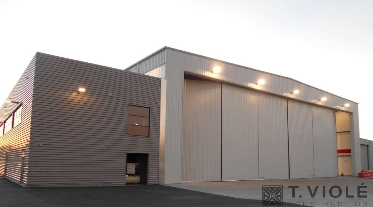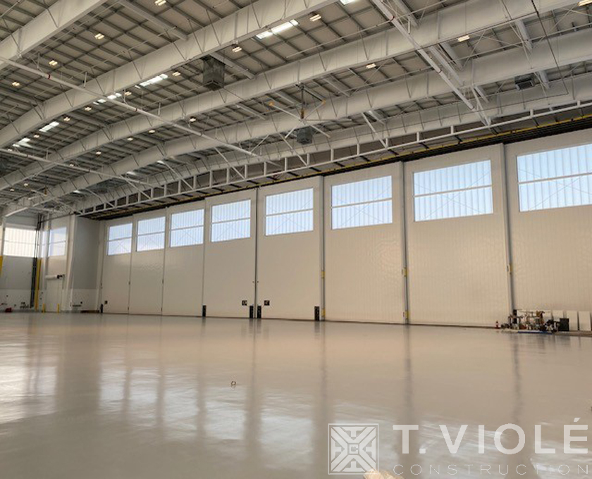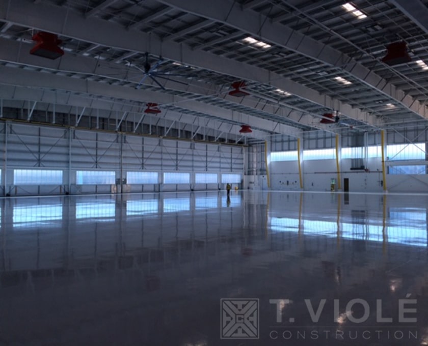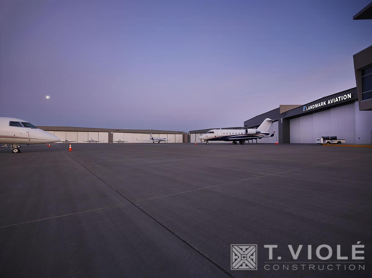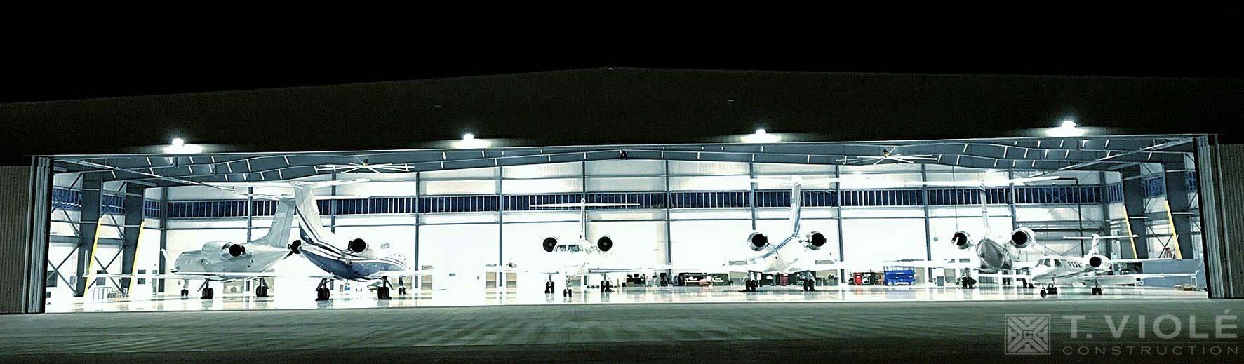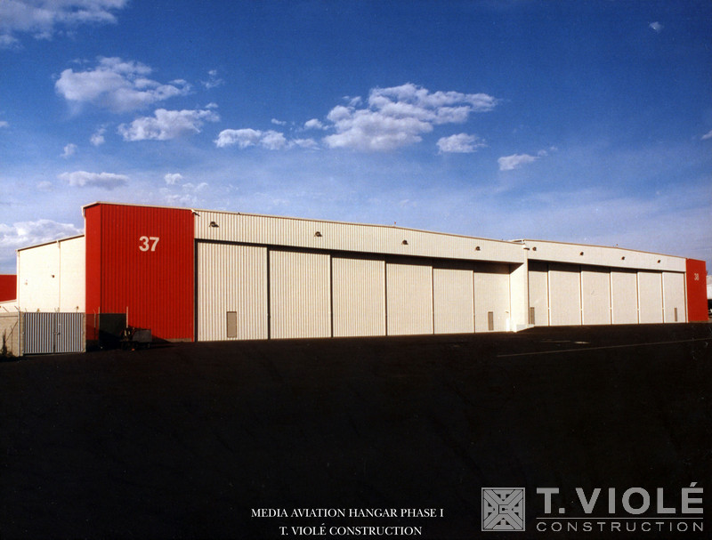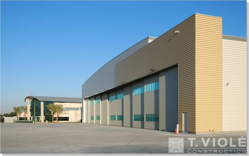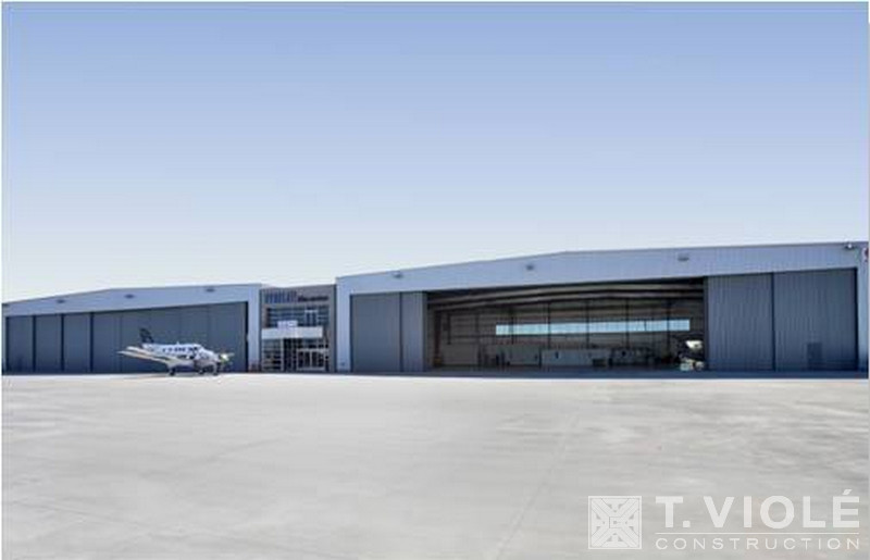 New construction of a 48,500 sq. ft. hangar, 280 ft. clearspan, 55 ft. clear height, with an adjacent 5,800 sq. ft. steel framed office. This project also includes 171,000 sq. ft. of concrete tarmac and 25,000 sq. ft. of parking lot improvements.