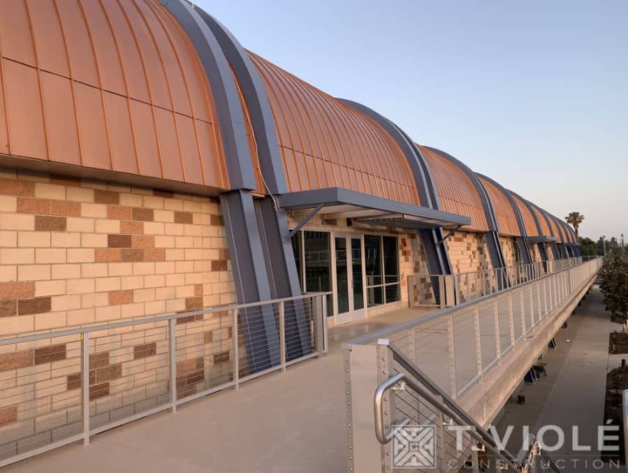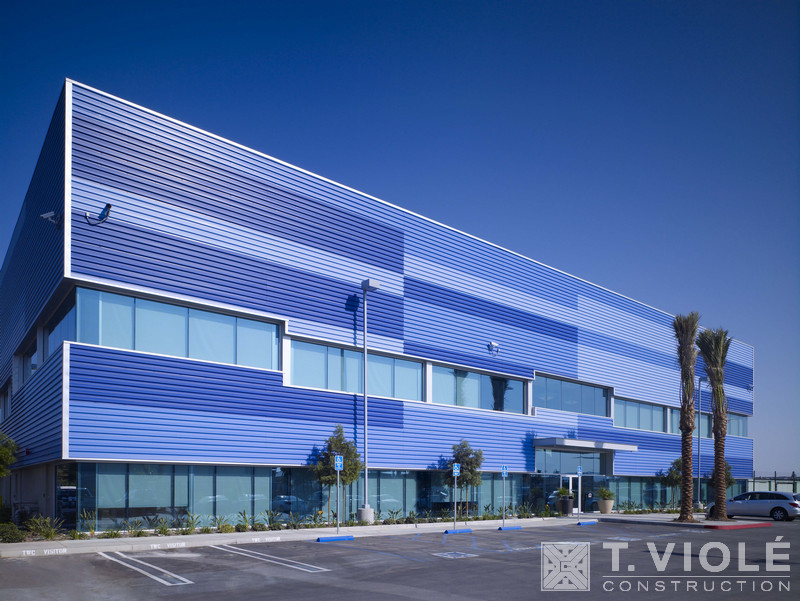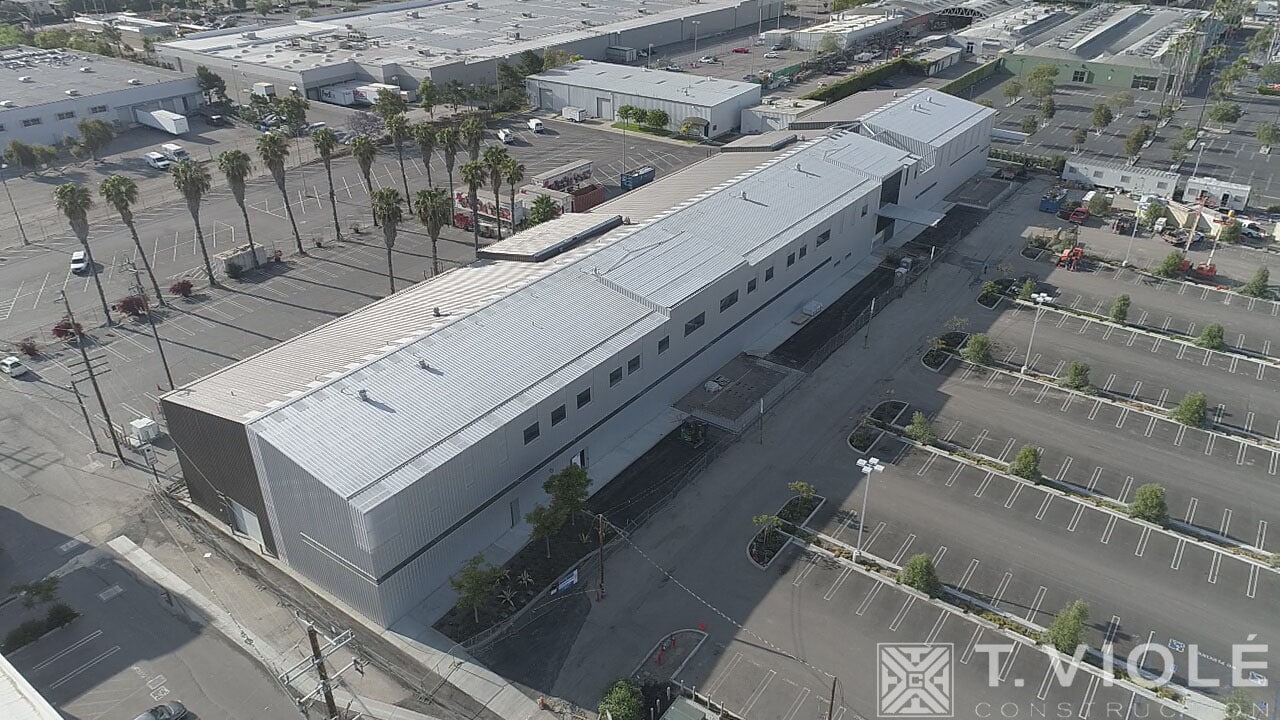 A one and two story office building totaling approximately 58,000 sq. ft. Includes open air patio/garden area on mezzanine level, six large skylight units and tow open wall assemblies covered by aircraft style bifold doors. Natural day lighting achieved with the use of translucent wall and roof panels, two color – exterior single skin PBR wall and roof panels.