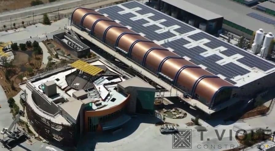 60,000 sq. ft. Material Recovery Facility (MRF), Concrete Tilt-up exterior walls with Butler MR-24 Roof System in Cool Solar White, roof walkway system. Engineered for roof mounted Photovoltaic System. LEED Silver project.