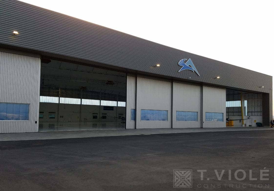 Two new hangars totaling 65,000 sq. ft. with related maintenance offices and a new 22,500 sq. ft. two story office building including new site work, tarmac area and runway access.