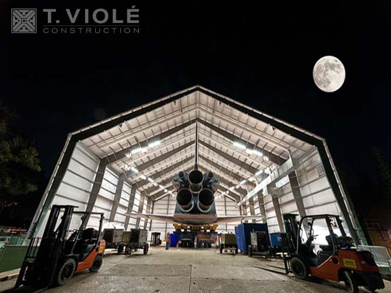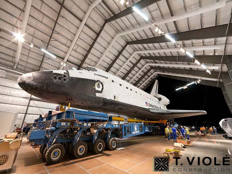 New construction of a 17,500 sq. ft. by 66′ tall, 6:12 roof slope, Butler pre-engineered steel building to house the Space Shuttle Endeavour Orbiter at the California Science Center in Downtown Los Angeles.